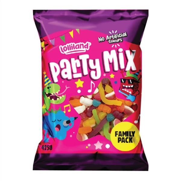 Lolliland Family Pack Party Mix. These Lolliland Party Mix are filled with popular crowd pleasers, grab a couple of bags for your next party. Size: 425g