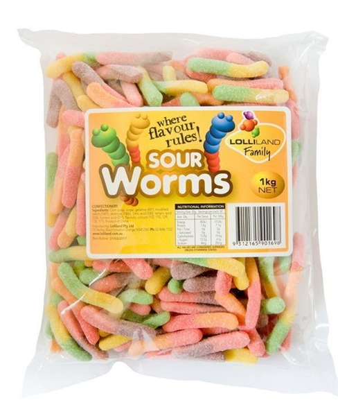 Lolliland Sour Worms 1kg. Squiggly worms with a sour hit!