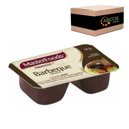 MasterFoods Barbecue Sauce Portion Control comes in a convenient 14g sachet, making it perfect for serving at cafes, bed and breakfasts and on flights. No burger or BBQ meat tastes the same without Masterfood's unique sauce. It is ideal in any office, home, school kitchen, canteen, cafe and hotel. Contains: Wheat and tomatoes. Size: 14g each serve, 100 serves per carton.