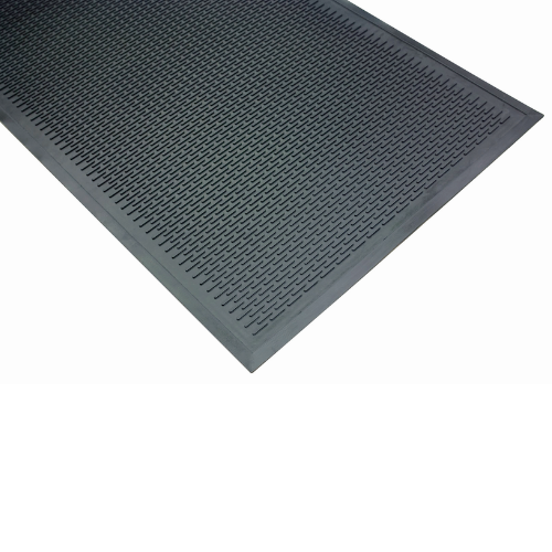 Constructed from durable rubber, this mat features a holed design that allows water, liquids, and debris to pass through, keeping the surface safer and drier underfoot.