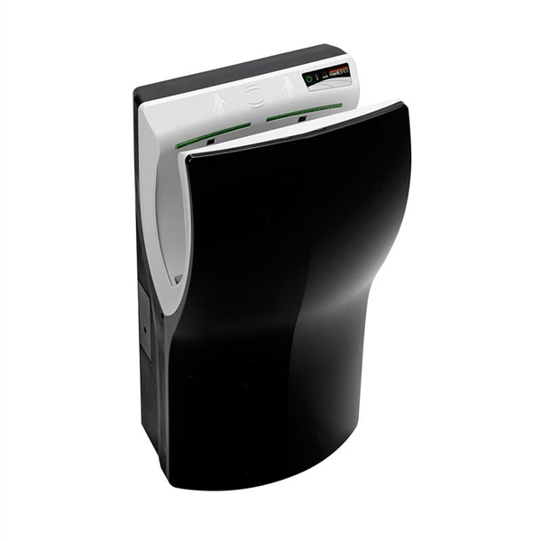 Model: M14AB. Black. Dualflow® Plus eco high-speed, hands in dryer. The dualflow® plus includes the most innovative components in order to guarantee maximum hygiene when drying. Anti-microbe and anti-bacterial protection Biocote®, based on silver ion technology. These ions inhibit the growing of micro-organisms in the product throughout its useful life cycle. H13 HEPA filter, which prevents the proliferation of bacteria. Optionally, it may include odour neutralizers for a cleaner and more pleasant environment. IDEAL FOR: Hotels, airports, clubs, offices, cinemas, sports centres etc. Suitable for installation in facilities for disabled people.