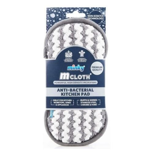 Minky Non-Scratch Anti Bacterial Kitchen Pad. Enjoy a powerful and effective clean with the Minky Cloth Kitchen Pad from Minky. Specially crafted from high-density microfibre, this dual-sided pad features a non-scratch zig-zag pattern on one side, getting deep into hard-to-reach areas to remove stubborn grease and grime with ease. Plus, with a ribbed microfiber backing and a long-lasting anti-bacterial treatment, this handy pad provides a sparkling and hygienic clean, every time!. Dual-sided high-density microfibre pad. Long-lasting anti-bacterial treatment. Ideal for cleaning kitchen worktops, sinks, appliances and more. Non-scratch zig-zags remove stubborn grease and grime with ease. Material: Microfibre. Colour: White/Grey
