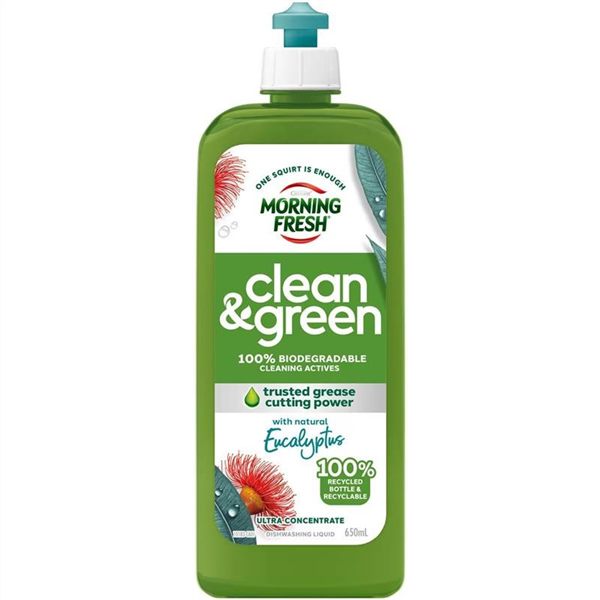 . Morning Fresh Clean & Green is made from 100% biodegradable and naturally derived cleaning actives to deliver an environmentally friendly clean without compromising on performance, thanks to Morning Fresh's trusted grease cutting power- tough on grease, kinder to our planet