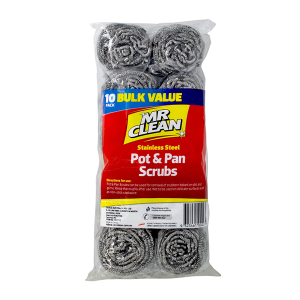 • Heavy duty stainless steel scrubbing pads designed for pots and pans