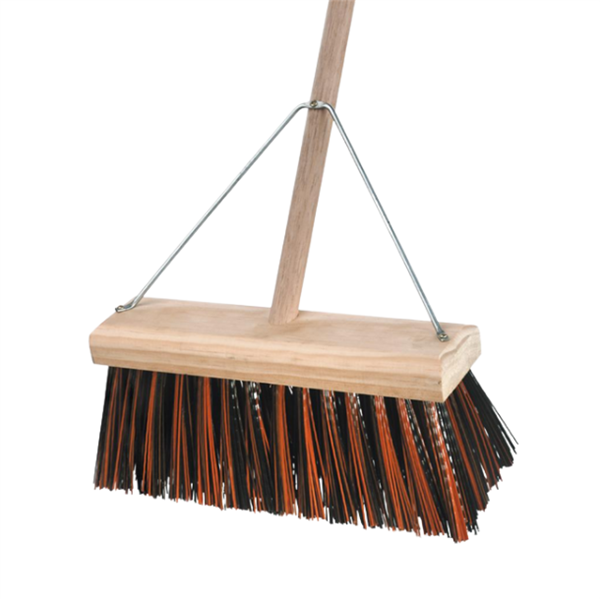 - The Oates Poly Yard Broom with Handle & Bracket (OA164933) is a robust outdoor broom designed for sweeping roads, rough surfaces and exterior areas.