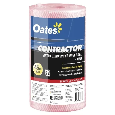 Oates Contractor Extra Thick Wipes Roll 45m 90 Wipes Red
