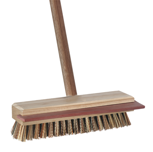 Oates Dual action scrub and squeegee. It has stiff, durable bristles to remove tough grime and squeegee removes excess water and debris. Fits 25mm handle with 22mm threaded adaptor.