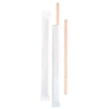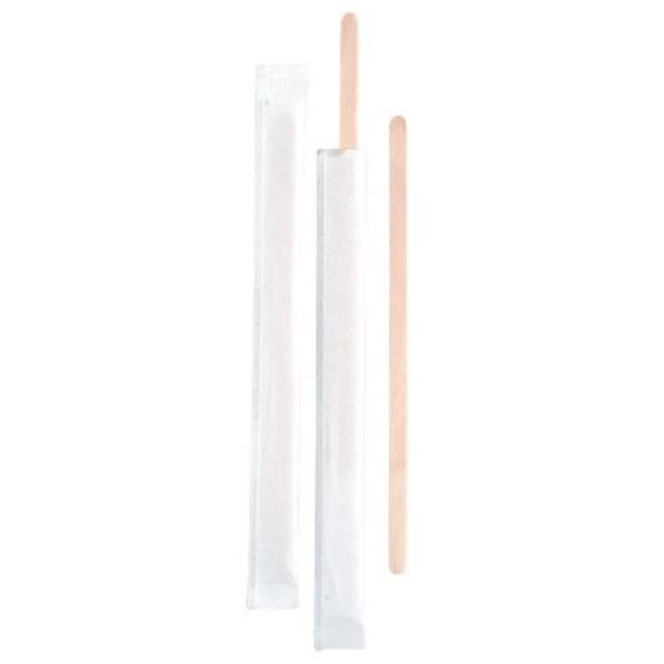 Bygreen Wooden Stirrers Individually Wrapped. Size: 140mm x 6mm. Colour: Natural/Kraft. Material: Wood. Edge: Square. Quantity: 1000 stirrers per pack