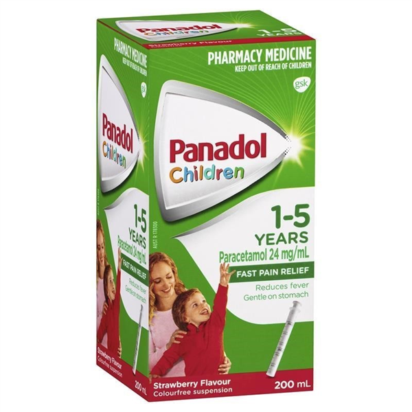 Panadol Children 1-5 Years is for fast pain relief and reduces fever. Children's Panadol is Australia's leading brand for children's pain relief. The active ingredient in Children's Panadol is paracetamol. Nothing is more effective for children's pain and fever. Colour free. Great tasting flavours. Accurate, easy to use dosing device. Sugar free. No artificial colours. PET bottle with neck insert for easy dosing (BPA free). Flavour: Strawberry