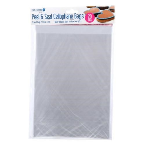 Peel & Seal Cellophane Bags. Size: 22cm x 33cm. Quantity: 20 Per Pack
