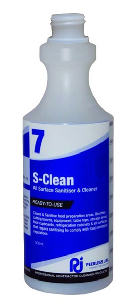 is a durable, pre-labelled refill bottle designed for use with the Peerless S-Clean sanitising solution.