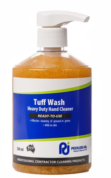 PRODUCT DESCRIPTION. Peerless Tuff Wash Heavy Duty Hand Cleaner 500ml is a powerful, natural soap-based formula designed to remove the toughest grime without the need for water. Infused with orange oil and synthetic grit, Tuff Wash cuts through oils, grease, paint, and stubborn industrial soils with ease. Its medium viscosity formula clings to skin for maximum cleaning power, lifting ground-in dirt from hands and arms quickly and effectively. Ideal for garages, workshops, and industrial environments, it can be wiped away with a cloth or rinsed with water for convenience. Tough on grime yet gentle on skin, Tuff Wash leaves hands thoroughly clean and refreshed after every use