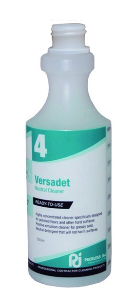 is a durable, pre-labelled refill bottle designed for use with the Peerless Versadet cleaning solution.