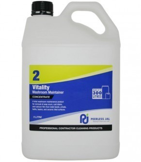 Peerless Vitality Washroom Maintainer 5L is a specialised cleaner designed for the routine maintenance of washroom surfaces.
