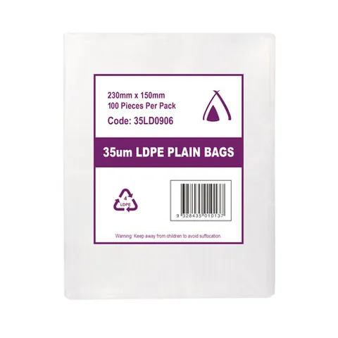 The Poly Bag 9x6" (230x150mm) 35µm is a strong, clear plastic bag designed for secure packaging, storage, and protection of small to medium-sized items.