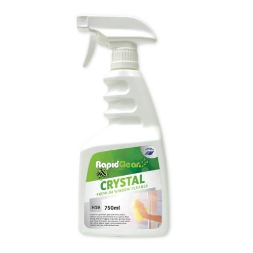 RapidClean Crystal is a premium glass and shiny surface cleaner. Crystal is formulated to be spotless flash drying with anti-fogging properties, giving a streak and smear free result. No ammonia, Crystal repels dirt and improves gloss. Crystal is safe for use on all glass and metal surfaces. It is fast drying and provides and streak and smear free result. Size: 750ml