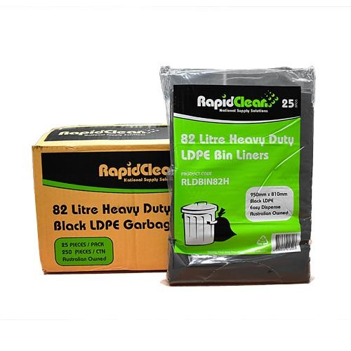 RapidClean Garbage Bag 82L Heavy Duty Black 25/PK 10/CTN