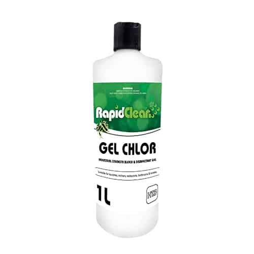 RapidClean Gel Chlor is a chlorine-activated bleach and disinfectant in a thickened gel form with a fresh eucalyptus fragrance.