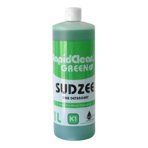 . RapidClean Sudzee Sink Detergent is a highly concentrated neutral liquid detergent formulated for hand dishwashing applications and in a wide variety of manual cleaning operations. SUDZEE is a green liquid with a fresh APPLE aroma