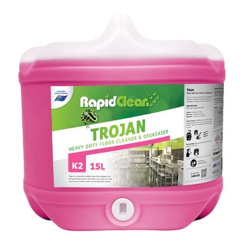 RapidClean Trojan Heavy Duty Floor Cleaner is made to cut through built-up grease and kitchen soil. It will strip-away grease on hoods, vents, ovens and kitchen floors