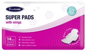 REAL CARE SUPER PADS W/WINGS 14/PK