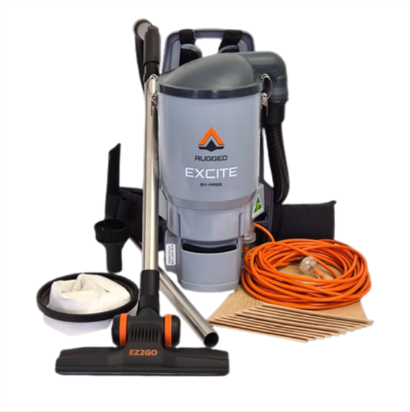 - The Rugged Excite Backpack Vacuum Cleaner is a commercial-grade backpack vacuum designed for heavy-duty use in demanding cleaning environments.