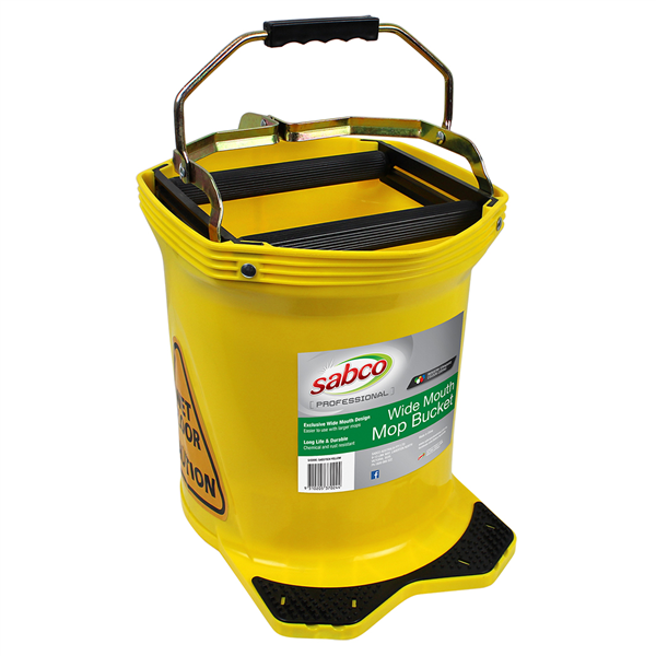 - The Sabco Bucket 16L Wide Mouth Roller Mop Yellow is a robust and professional cleaning bucket designed for high-traffic and hygiene-sensitive environments.