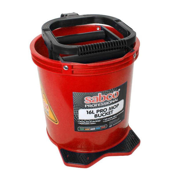 - The Sabco Pro Mop Bucket Red is a heavy-duty commercial mop bucket designed for efficient floor cleaning in professional environments.