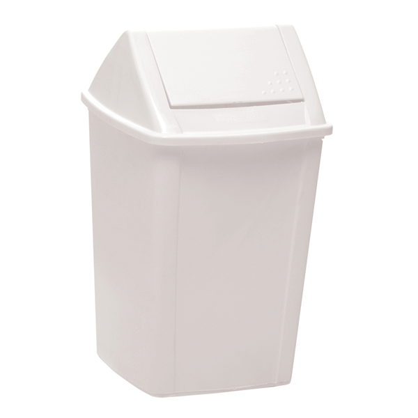 - Featuring a strong plastic body and swing-top lid, it provides quick access for disposal while keeping contents covered and out of sight.