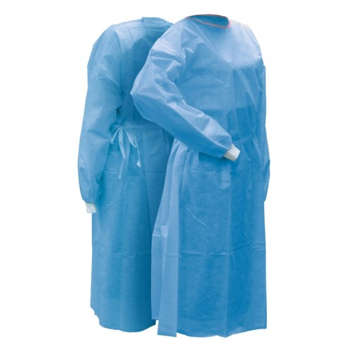 Safewear SMS Isolation Gown. Made from heavy-weight SMS material that meets AAMI PB70 level 3 testing. Full back coverage design with soft velcro tape at the collar and waist ties to secure the coverage. Liquid barrier performance (impact penetration and hydrostatic pressure). Complies with AAMI PB70 | Level 3. Size: Regular. Colour: Blue. Quantity: 50 Gowns Per Carton
