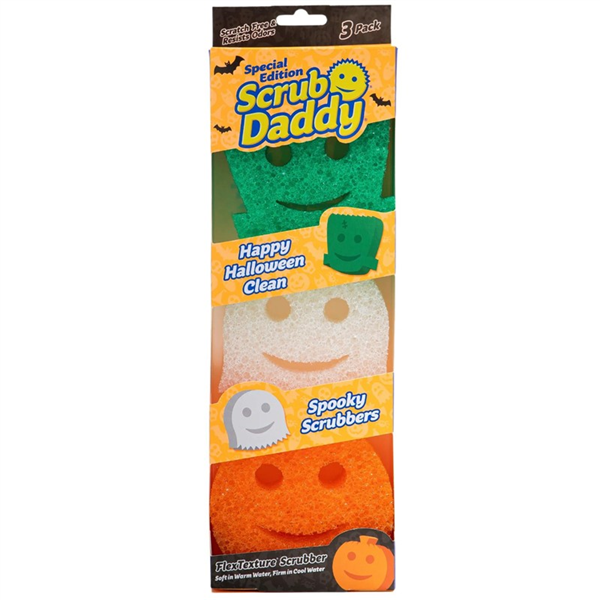 - Limited-edition Halloween 3-pack featuring Green Monster, White Ghost, and Orange Pumpkin scrubbers.