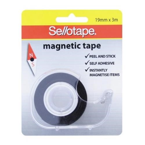 Sellotape magnetic tape comes in a convenient handy sized dispenser. Ideal for sticking onto lightweight items such as photos, drawings, calendars and notes which can then be attached to any magnetic to surface such as fridges, metal filing cabinets, lockers and magnetic whiteboards. Tape Size: 19mm x 3m roll