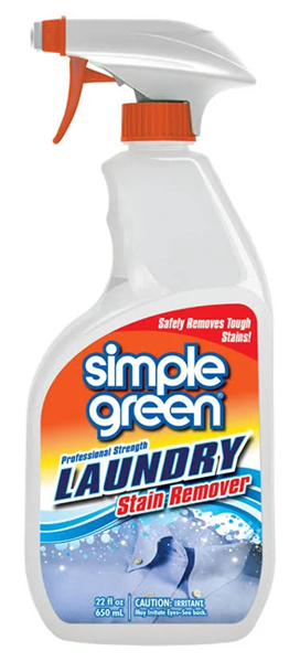 Simple Green Pre-Wash Laundry Stain Remover 650ml, a ready to use, non-toxic, biodegradable stain remover. With its professional strength formula, it safely removes even the toughest dirt, body oils, grease and food spills the "first time."