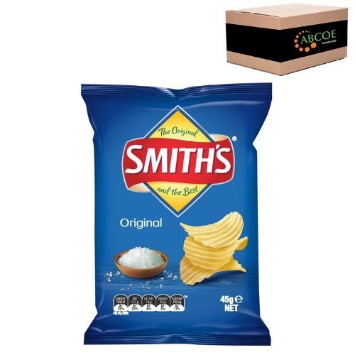 . Smith's Crinkle cut, Smith's are very proud of their heritage and strive to ensure that they maintain the position as Australia's favourite chips - The Original and the Best. Smith's take top quality Aussie potatoes, peel, slice and cook them to perfection using healthier oils and then sprinkle them with your favourite seasoning. Flavour: Original. Size: 45g. Quantity: 18 bags per carton