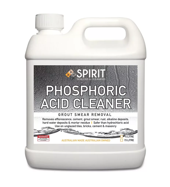 Concentrated phosphoric-acid cleaner formulated to dissolve grout haze, mortar residue, rust stains, hard-water deposits, and efflorescence on tiles, pavers, masonry and glazed surfaces (where suitable).