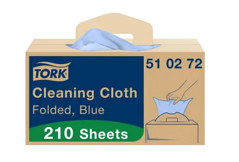 Tork Cleaning Cloth Blue Folded 210/CTN Code 510272 is a versatile, disposable cleaning cloth designed for efficient wiping and surface cleaning tasks.
