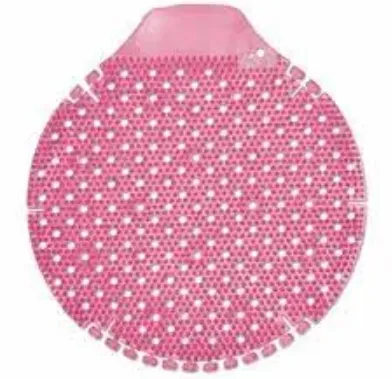 . Double-sided slant design for superior splash prevention. Warm spiced apple fragrance. 6” diameter ideal for smaller urinals. Freshens stronger and longer than other screens. Low VOC and environmentally compliant. Individually packaged for hygiene. Provides up to 30 days of freshness. Convenient pack of 10