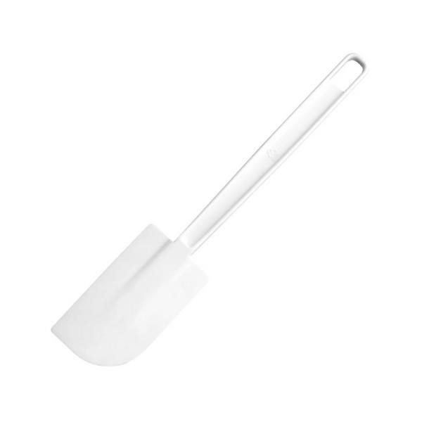 Completely safe for use with non-stick pots, pans or trays, this rubber ended spatula from Vogue is ideal for keeping your cookware in top condition. The special curved rubber head allows you to scrape bowls and trays clean effortlessly without worrying about scratching them. Not only will it protect your equipment, it will also reduce your waste and speed up preparation times. Quick and easy to clean, this spatula can be hung up for easy access and storage when not in use thanks to the convenient hole in its handle. Curved head for easy scraping. Safe for use with non-stick cookware. Strong hygienic handle. Hole in handle for hanging storage. Not suitable for dishwasher use. Dimensions: 255mm(L). Material: Rubber End. Weight: 30g