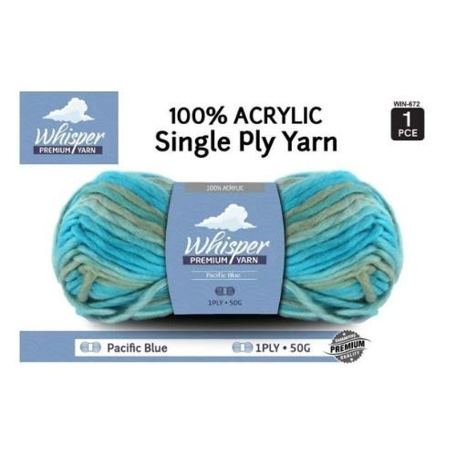 Whisper Yarn 100% Acrylic Single Ply Yarn. 1Ply. Pacific Blue. Size: 50g
