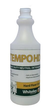 is a durable, pre-labelled refill bottle designed for use with the Whiteley Tempo HD multipurpose neutral detergent.