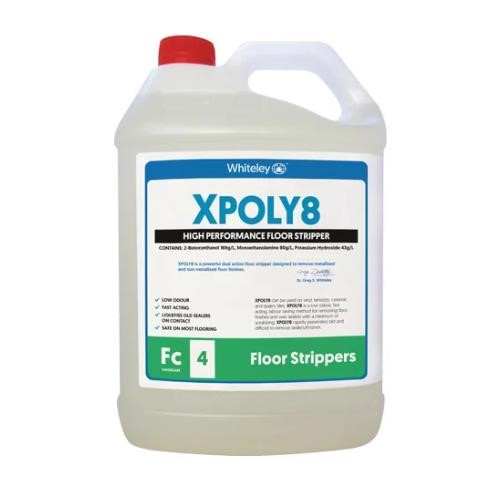 Xpoly8 is a low odour, fast acting and labour saving method for removing floor sealers/finishes with minimal scrubbing. Xpoly8 is a new generation floor stripper designed to rapidly liquefy and emulsify old sealers for easy removal with an auto-scrubber or mop and bucket. Xpoly8 is a powerful dual action floor stripper designed to remove metalized and non-metalized floor finishes. Xpoly8 contains a blend of glycol solvents that synergise with a rapid penetration dual chain emulsifier to penetrate the most stubborn old polish films. Size: 5L