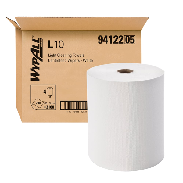 WypAll L10 Heavy Duty Perforated Centrefeed 1 Ply 300m 4/CTN is a high-capacity wiping paper designed for demanding cleaning tasks.