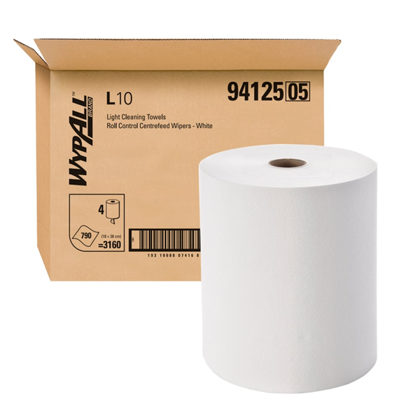 WypAll L10 Roll Control Centrefeed 300m 4/CTN is a high-capacity wiping paper designed for efficient, controlled dispensing in busy environments.