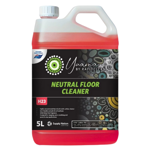 RapidClean Yaama Neutral Floor Cleaner is a highly concentrated multi-surface cleaner featuring a neutral pH formula that is eco-friendly and safe for use on marble, granite, vinyl, and other hard surfaces. Designed for both mopping and auto-scrubbing, it cleans effectively while helping to protect and maintain floor finishes.