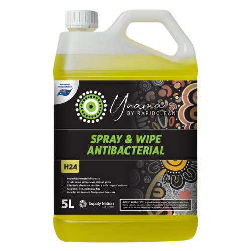 RapidClean Yaama Spray & Wipe is a powerful antibacterial formula that breaks down and removes dirt and grime while combining a specialised blend of quaternary compounds, alcohol, and non-ionic surfactants.