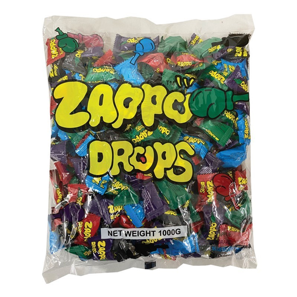 Zappo Drops - individually wrapped candies in assorted flavours. (1kg). Each Drop weighs appprox 4g so therefore you would be receiving approximately 250 peices in each 1kg bag.