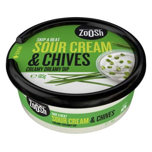 Zoosh Sour Cream & Chives Dip. Liven up your party platter with Zoosh creamy dreamy dips. Flavour: Sour Cream & Chives. Size: 185g