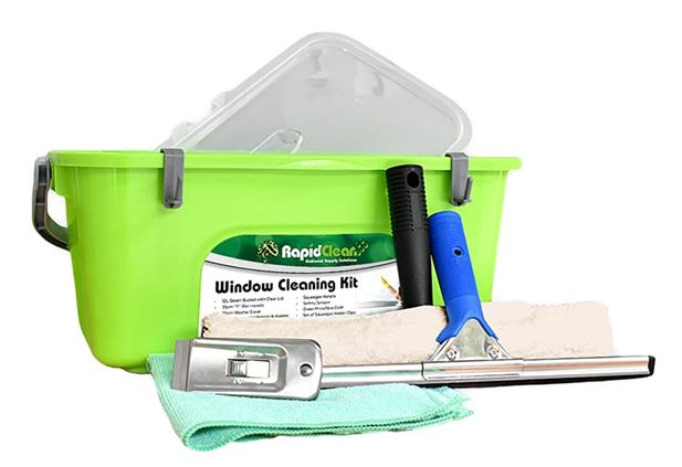 RapidClean Window Cleaning Kit is a semi-professional grade bucket kit. Use this kit to effectively clean windows and leave a streak free finish. Kit Includes: 1 x 12L Green Bucket with Clear Lid, 1 x 35cm “T” Bar Handle, 1 x 35cm Washer Cover, 1 x 35cm Squeegee Channel & Rubber, 1 x Squeegee Handle, 1 x Safety Scraper, 1 x Green Microfibre Cloth, 1 x Set of Squeegee Holder Clips.
