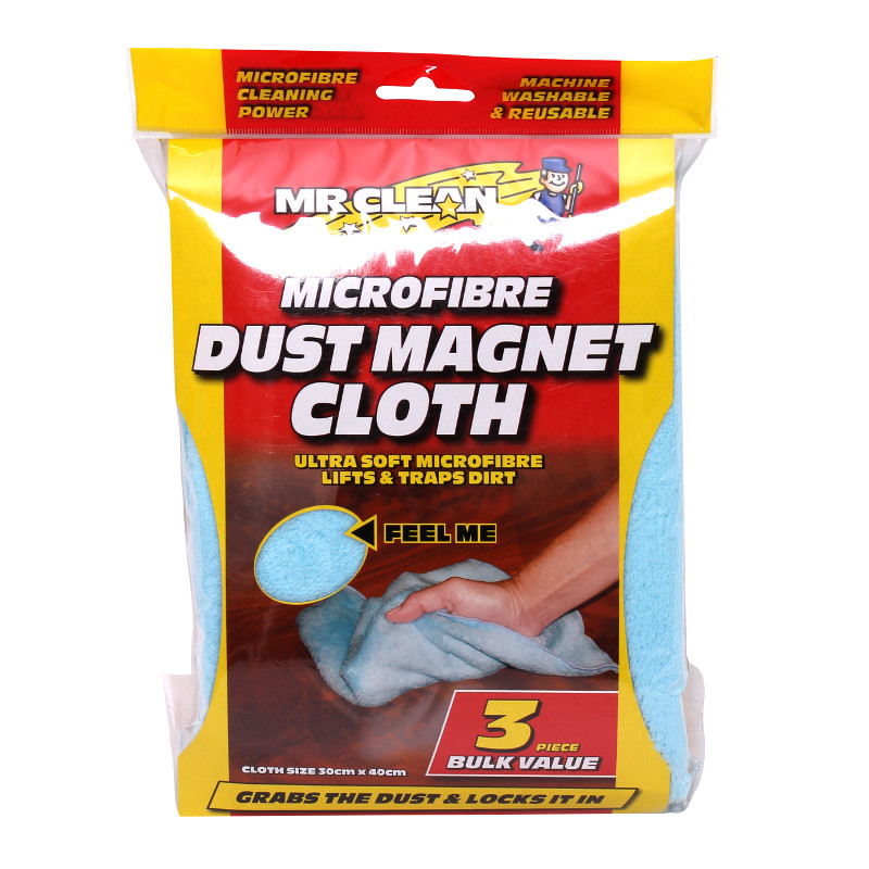 Cloth Dimensions: 30cm x40cm. It is extremely soft microfibre lifts and traps dust.It's machine washable and reusable. Rinses perfectly clean. Can withstand 100’s of washings. Microfibre Cleaning Power
