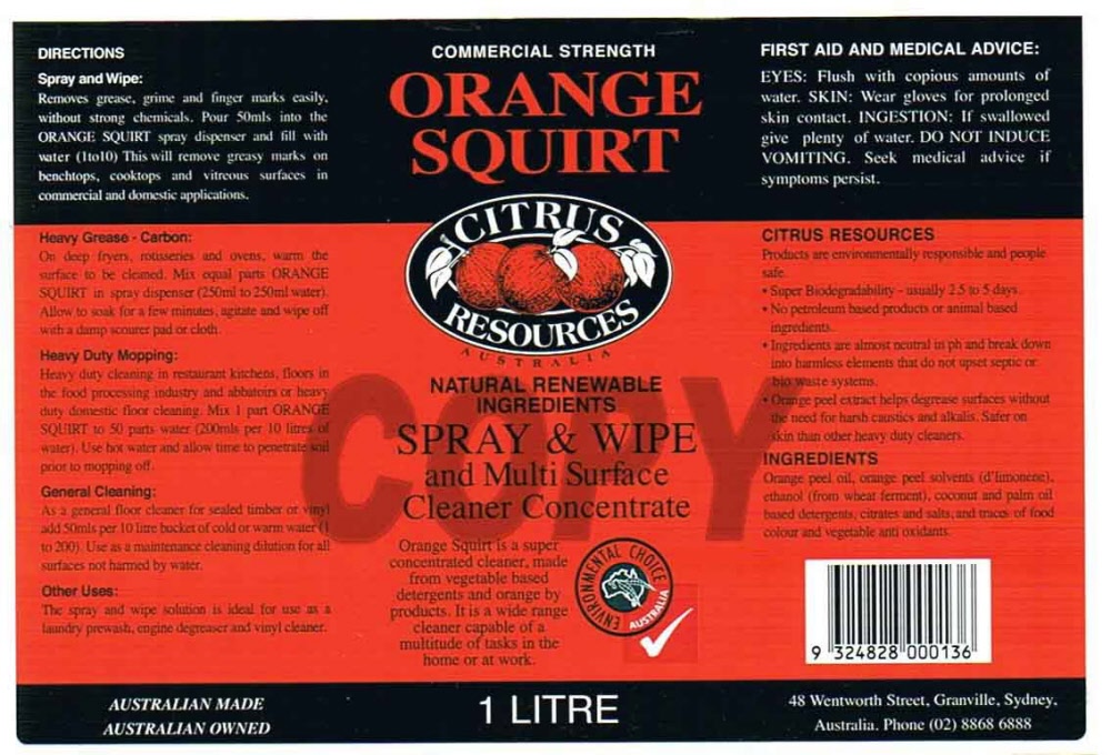 CITRUS RESOURCES have been able to break through the performance barrier whilst still utilising naturally derived ingredients. Greasy soils - Orange oil solvent (D-Limonene), pine and sugar alcohol softens and solubilises oily soils; even hardened fats are lifted effectively.